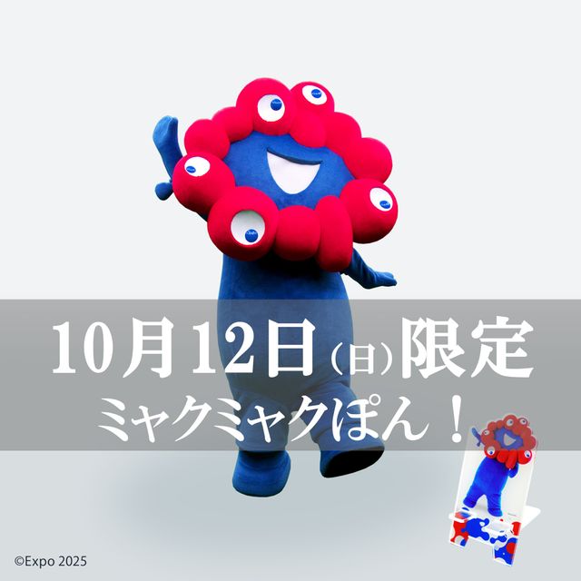 ミャクミャク召喚グッズの大人気コンテンツ「ミャクミャクぽん!」が、今だけ【当日9:00~翌日23:59】限定で無料体験できます!