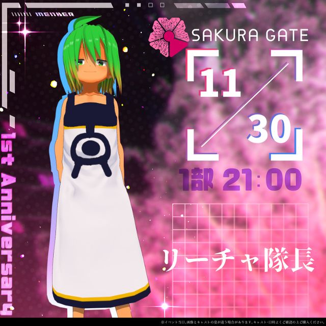 【11/30(日)1部 21:00~】SAKURA GATE - 入場チケット【リーチャ隊長】