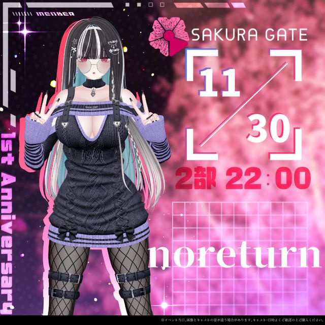 入場チケットをお持ちの方は11/30(日) 2部 22:00~(キャスト:noreturn)「SAKURA GATE」ワールドへ入場することができます。 【販売期間:2025年11月18日(火)19:00~2025年11月26日(水)23:59まで】 ※ご購入前に必ず下記の注意事項等をよくお読みください。 ※予定枚数に達し次第、販売終了いたします。 開催日:2025年11月30日(日) 時間: 2部 22:00~ (キャスト:noreturn) 会場:Babell (https://gugenka.inc/babell) 参加方法:イベント会場に入場する方法は、イベント当日にメールにてご案内いたします。 ※@gugenka.jpからのメールを受け取れるよう設定してください 「SAKURA GATE」X:https://x.com/Sakuragate_VRC【本商品内容】